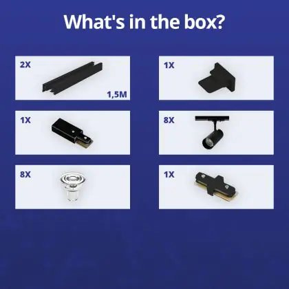 | Fabrikantnaam | Complete Straight 3-meter 1-Phase Track Set Black incl. 8x Spot fixture + GU10 2700K 3W Dim – 2x 1.5 | |