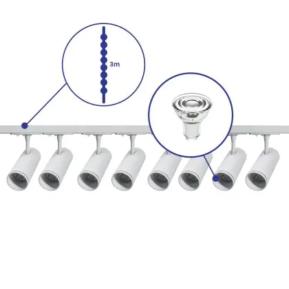 | Fabrikantnaam | Complete Straight 3-meter 1-Phase Track Set White incl. 8x Spot fixture + GU10 2700K 3W Dim – 2x 1.5 | |