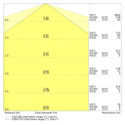 ![]() De kleurcode is een combinatie van de kleurweergave (CRI) en lichtkleur (Kelvin). Het eerste getal is de kleurweergave (1 = zeer slechte kleurweergave, 9 = maximale kleurechtheid). Het tweede en derde cijfer betreft de lichtkleur. Een lamp met kleurcode 830 heeft bijvoorbeeld een goede kleurweergave en straalt een warm wit licht uit (3000K), waar een lamp met de kleurcode 940 een uitstekende CRI heeft en een koel wit licht (4000K) uitstraalt. |