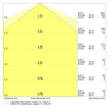 ![]() De kleurcode is een combinatie van de kleurweergave (CRI) en lichtkleur (Kelvin). Het eerste getal is de kleurweergave (1 = zeer slechte kleurweergave, 9 = maximale kleurechtheid). Het tweede en derde cijfer betreft de lichtkleur. Een lamp met kleurcode 830 heeft bijvoorbeeld een goede kleurweergave en straalt een warm wit licht uit (3000K), waar een lamp met de kleurcode 940 een uitstekende CRI heeft en een koel wit licht (4000K) uitstraalt. |