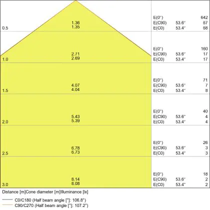 De gradenbundel geeft informatie over hoe breed het licht wordt uitgestraald. Dit zit tussen de 0 en 360 graden (D). Hoe kleiner de hoek, hoe specifieker de lichtbundel is. Over het algemeen is een smalle gradenbundel perfect voor sfeer- of accentverlichting, terwijl een brede gradenbundel ideaal is om grote oppervlaktes te verlichten.