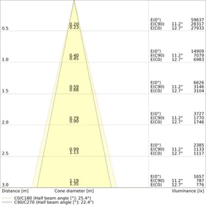 De gradenbundel geeft informatie over hoe breed het licht wordt uitgestraald. Dit zit tussen de 0 en 360 graden (D). Hoe kleiner de hoek, hoe specifieker de lichtbundel is. Over het algemeen is een smalle gradenbundel perfect voor sfeer- of accentverlichting, terwijl een brede gradenbundel ideaal is om grote oppervlaktes te verlichten.
