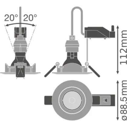 De gradenbundel geeft informatie over hoe breed het licht wordt uitgestraald. Dit zit tussen de 0 en 360 graden (D). Hoe kleiner de hoek, hoe specifieker de lichtbundel is. Over het algemeen is een smalle gradenbundel perfect voor sfeer- of accentverlichting, terwijl een brede gradenbundel ideaal is om grote oppervlaktes te verlichten.