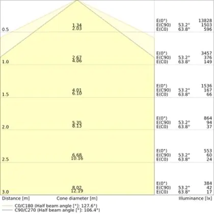 ![]() De kleurcode is een combinatie van de kleurweergave (CRI) en lichtkleur (Kelvin). Het eerste getal is de kleurweergave (1 = zeer slechte kleurweergave, 9 = maximale kleurechtheid). Het tweede en derde cijfer betreft de lichtkleur. Een lamp met kleurcode 830 heeft bijvoorbeeld een goede kleurweergave en straalt een warm wit licht uit (3000K), waar een lamp met de kleurcode 940 een uitstekende CRI heeft en een koel wit licht (4000K) uitstraalt. |