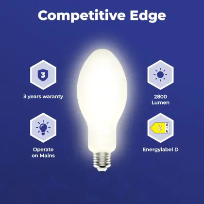 Noxion LED HID Ellipsvormig E27 18W 2800lm - 830 Warm Wit | Vervangt 50W