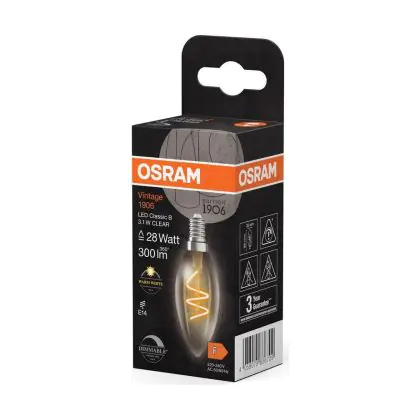 Osram Vintage 1906 LED Classic Slim E14 Kaars Filament Helder 3.1W 300lm - 927 Zeer Warm Wit | Beste Kleurweergave - Dimbaar - Vervangt 25W